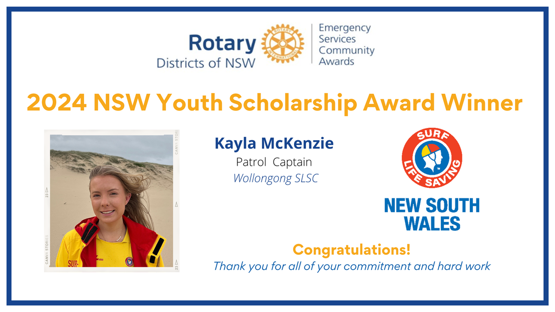 Commissioners from the Marine Rescue NSW, Surf Life Saving NSW, NSW RFS, NSW SES, and VRA Rescue NSW will each nominate an outstanding individual for consideration of the scholarship. A Rotary NSW panel will determine the most deserving candidate.